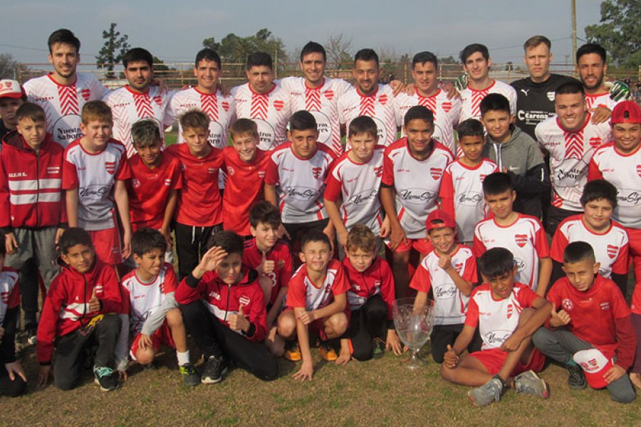 Este domingo y previo al partido entre Mitre y Central San Carlos los chicos de la 8va. División que se consagró campeón del primer torneo de la LEF, dieron la vuelta olímpica y luego se sacaron fotos con el plantel principal.