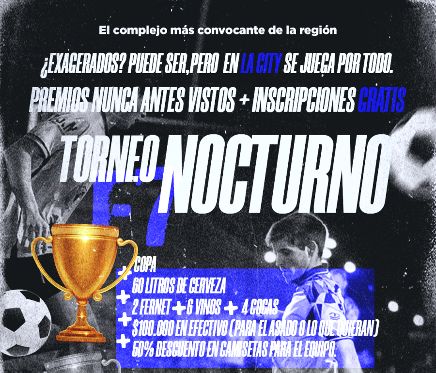 👉🏽 CAMPEON: Copa + 60 litros de cerveza + 2 fernet + 6 vinos + 4 cocas + $100.000 en efectivo (para el asado o lo que quieran) + 50% descuento en camisetas para el equipo.