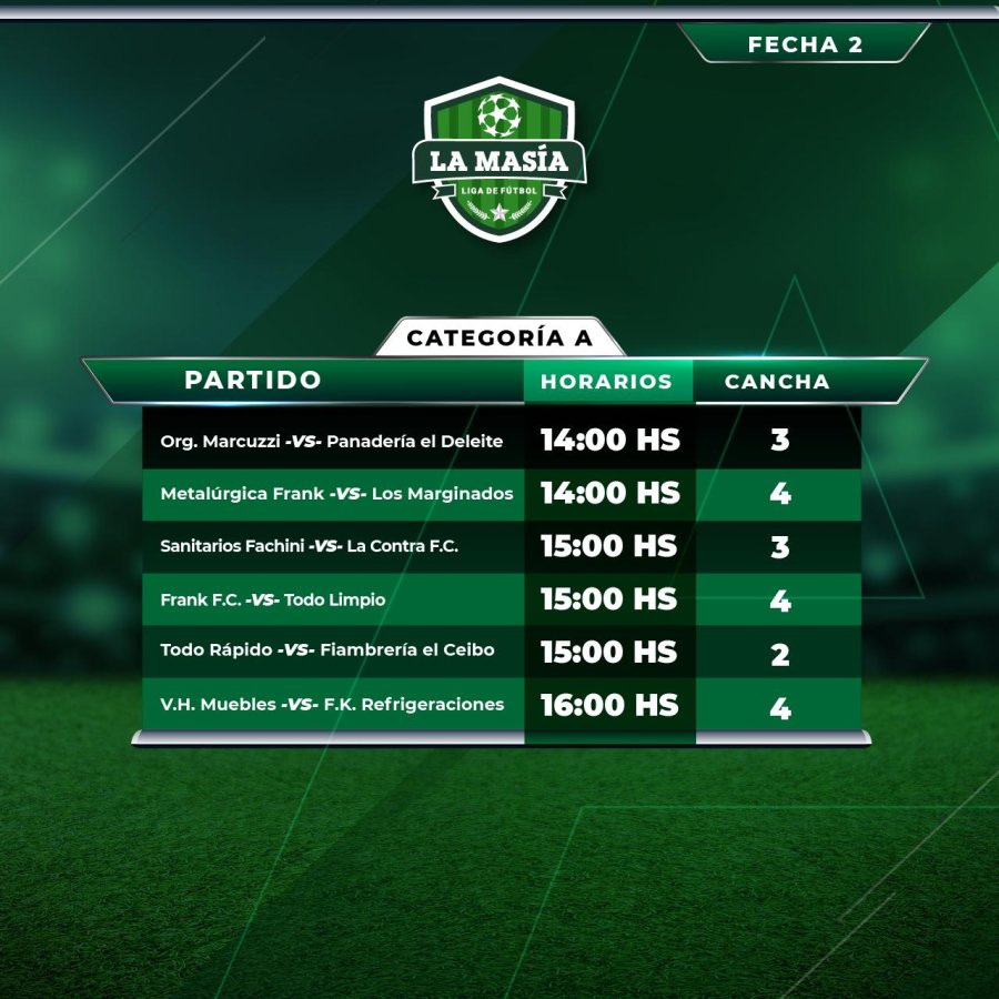 Los sábados volvieron a ser de la Liga La Masía, con 18 encuentros se jugará la segunda fecha del torneo apertura. La misma comenzará a las 14 horas.