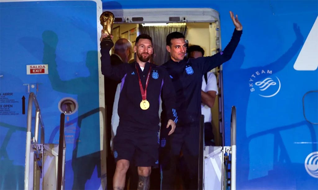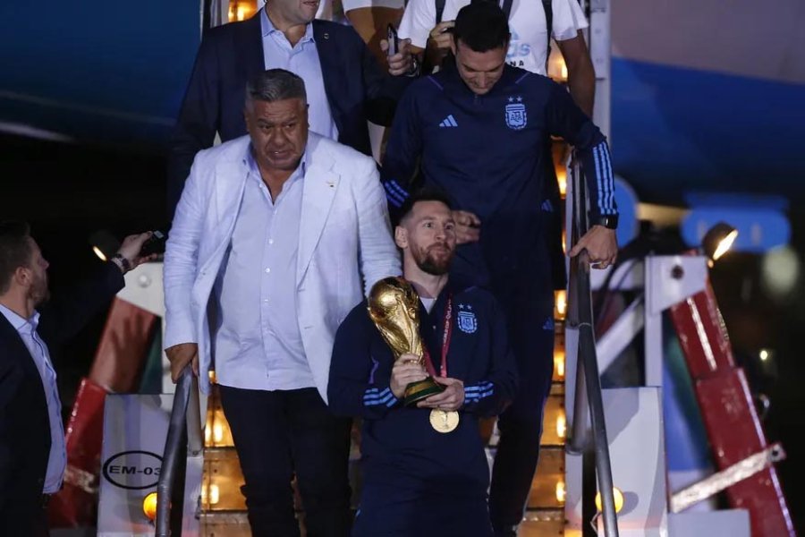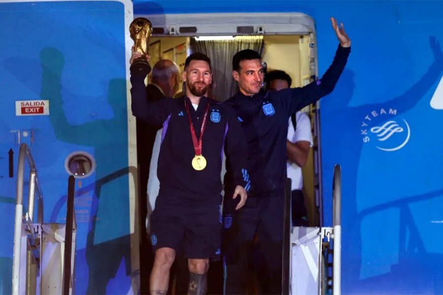 Encabezados por Lionel Messi, quien no se despegó de la Copa del Mundo, uno a uno los jugadores de la Scaloneta fueron bajando del avión. De fondo se escuchaba a la banda La Mosca cantar en vivo “Muchachos...”, el hit argentino del Mundial.