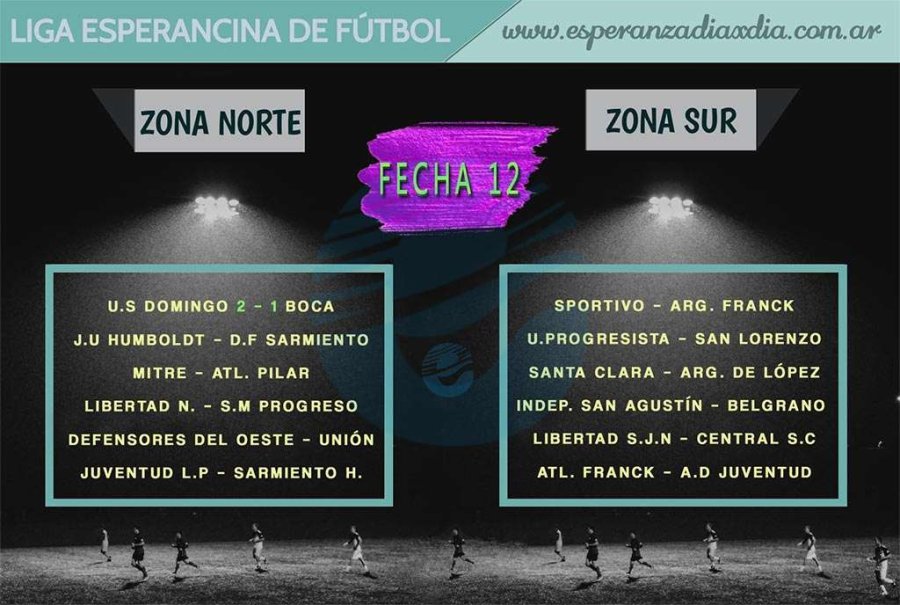 Se juega la duodécima fecha del Oficial “Emiliano Sala” de Liga Esperancina de Fútbol el próximo domingo desde las 14 en Reserva y 15:45 Primera División. Los partidos en cada grupo: