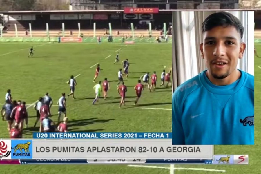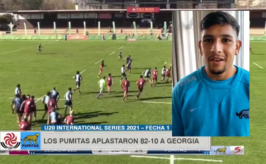 En su primer partido Los Pumitas golearon a Georgia por 82 a 10, partido en el que Mateo Nuñez ingresó en el segundo tiempo.