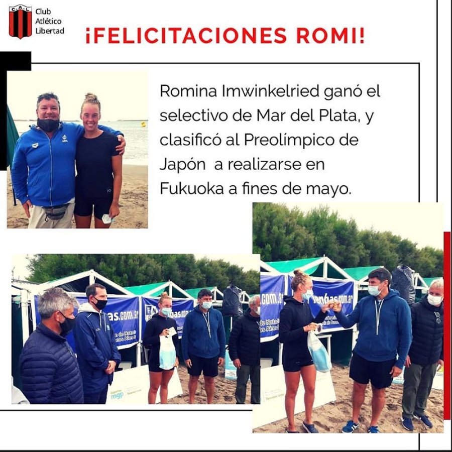 Este domingo se llevó realizó la carrera selectiva de aguas abiertas, en la playa del Club Náutico de Mar del Plata, en el que participó la nadadora Romina Imwinkelried obteniendo una de las dos plazas para el preolímpico a desarrollarse en Japón a mediados de mayo.