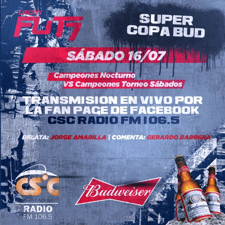 Este sábado se disputará la primera edición de la SUPER COPA BUD. Se enfrentarán los Campeones de cada categoría de ambos torneos (Nocturno y Sábados).