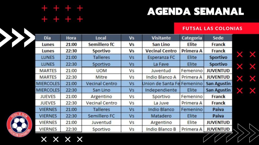 Este lunes habrá juegos en Esperanza en la cancha de Sportivo del Norte y en Franck.