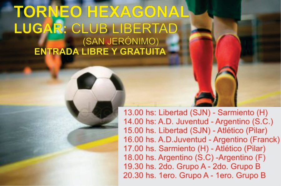 Este sábado 24  desde las 13 horas se jugará el torneo hexagonal de Futsal en San Jerónimo Norte organizado por la Asociación Esperancina de Fútbol Salón y en forma conjunta con Asociación Santafesina de Fútbol de Salón.