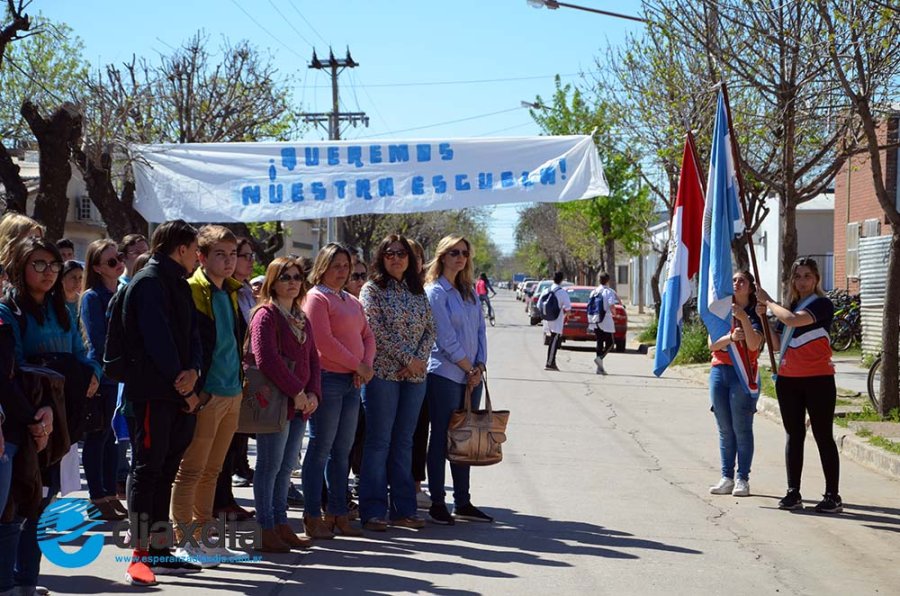 El acto contó con la participación de integrantes de la comunidad educativa, vecinos, padres, exalumnos, integrantes del Centro de Estudiantes, docentes, directivos de otras escuelas, concejales y representantes gremiales.