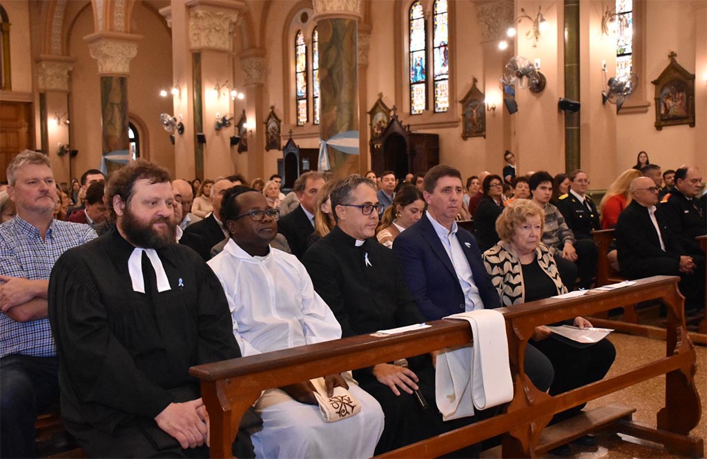 Las condiciones climáticas obligaron a realizar el Tedeum y el acto oficial en la Basílica Natividad. El mismo fue presidido por la Intendenta Municipal Ana Meiners, quien estuvo acompañada por el senador Rubén Pirola, concejales y algunos de los secretarios en funciones.