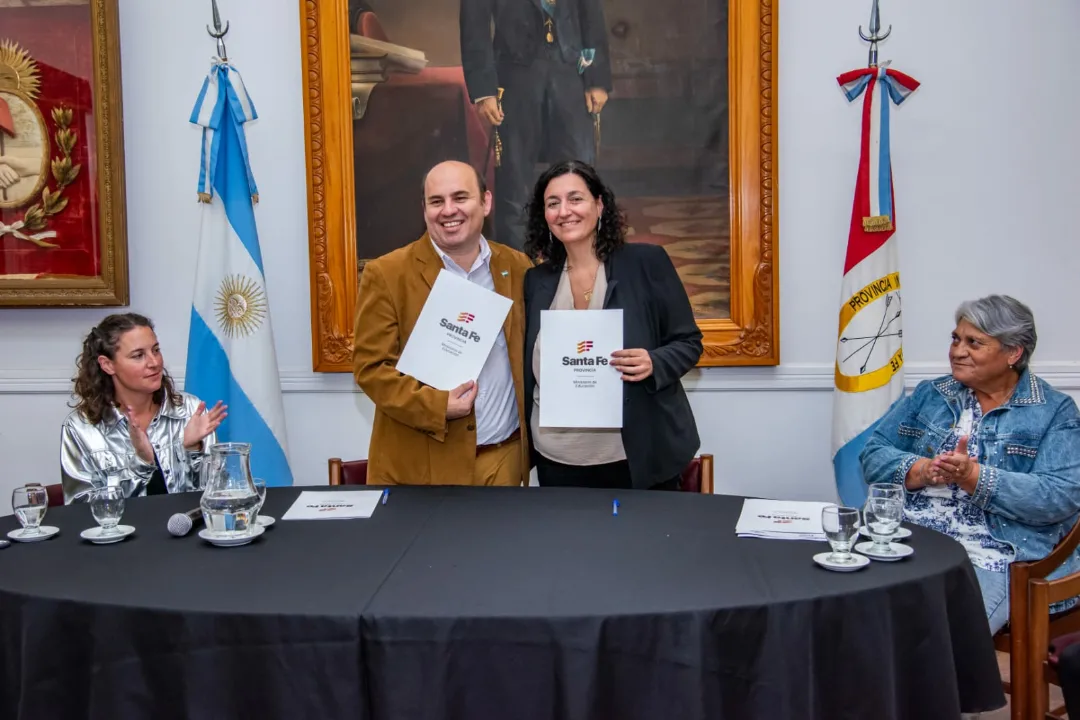 El intendente de Esperanza, Rodrigo Müller, y la secretaria de Educación de Santa Fe, Carolina Piedrabuena, firmaron este miércoles convenios que permitirán que agentes municipales puedan terminar la secundaria y que los cursos que brinda el municipio en el Centro de Capacitación Laboral (CECLA) Nº 74 cuenten con la certificación del Ministerio de Educación provincial.