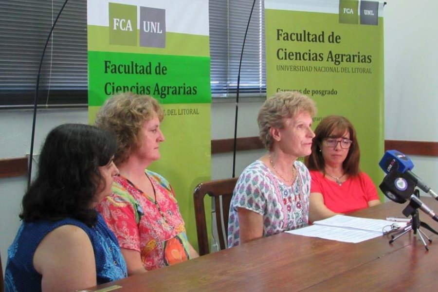 La Dra. Adriana Engler, Secretaria de Posgrado y Formación Continua; la Dra. Mariel Perreta, Directora del Doctorado en Ciencias Agrarias; la MSc. Marcela Buyatti, Directora de Maestría y Especialización en Cultivos Intensivos; y la MSc. María Isabel Castignani, Directora de la Maestría en Negocios Agroalimentarios, detallaron aspectos del área respectiva.