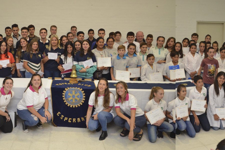 Cerca de 70 alumnos recibieron su distinción tras la elección que realizaron sus propios compañeros. Rotary Club Esperanza entregó el premio “Profesor Miguel Pili Cordini” a los alumnos de cada séptimo grado de escuelas primarias urbanas y rurales, mientras que Rotaract Club Esperanza entregó la distinción al “Compañero Más Servicial” a los alumnos que egresan de las escuelas secundarias.