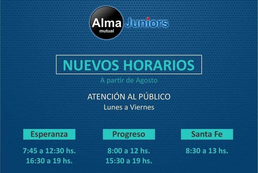 ATENCION HORARIO MUTUAL ALMA JUNIORS