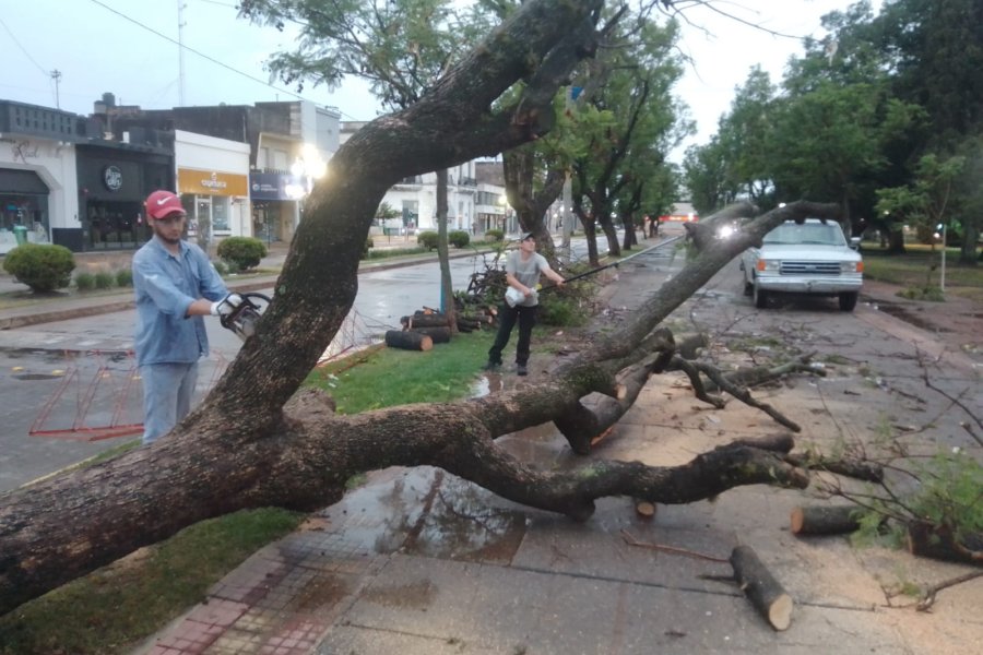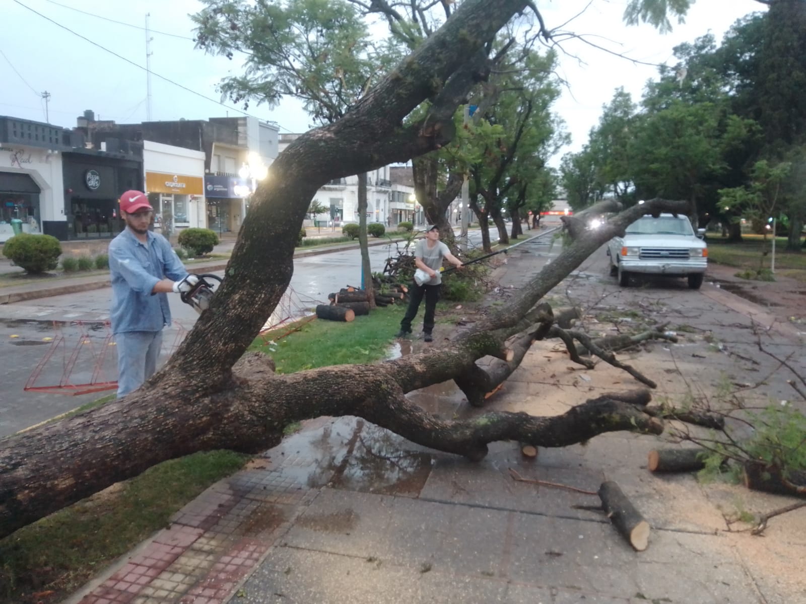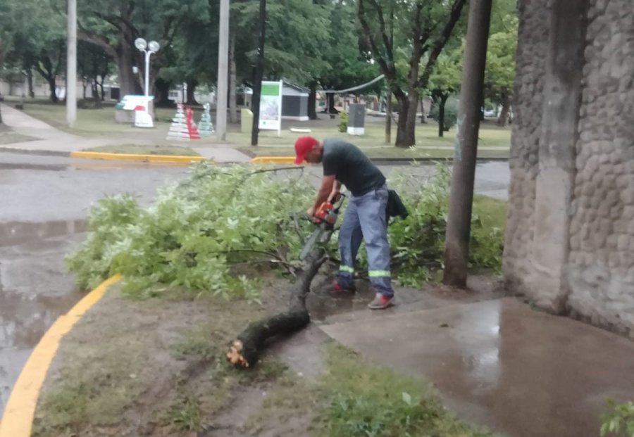 La Secretaría de Servicios Públicos de la Municipalidad de Esperanza confirmó que recibió 37 reclamos por ramas y árboles caídos. Que desde las 22 del viernes varias cuadrillas de agentes municipales fueron rotando en la prestación de servicios y que la totalidad de árboles caídos es de siete, uno de ellos en plaza San Martín.