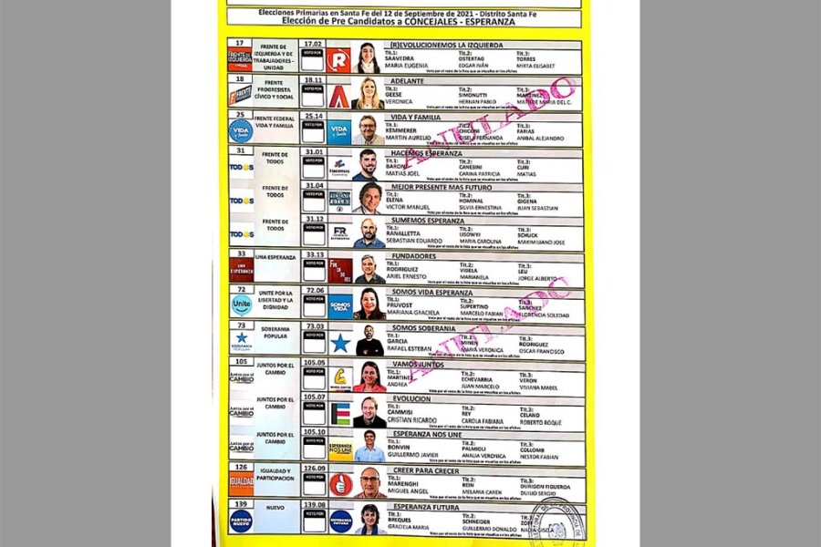 El Tribunal Electoral de Santa Fe oficializó este sábado las boletas únicas para las elecciones de cada distrito. Lo hizo ante los apoderados de los diferentes partidos políticos que tendrán la oportunidad de revisar las mismas que respetan la fotografía del primer candidato, el orden de aparición por sorteo y la colocación de los logos de cada agrupación.