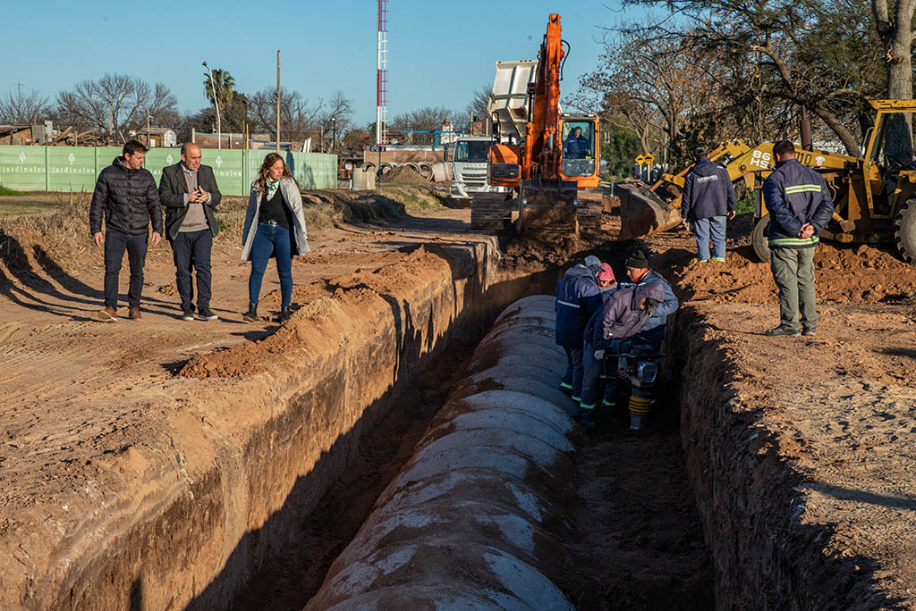 “Felicito a todo el personal de la Secretaría de Obras e Infraestructura Pública porque han avanzado muy rápido”, mencionó el intendente, y agregó que “estamos trabajando en varios frentes en materia hídrica: sobre calle Lito Gonella, desde la Ruta Provincial N.º 70 hacia el norte, por otro convenio público-privado, y también en la primera etapa del canal Hohenfels”.