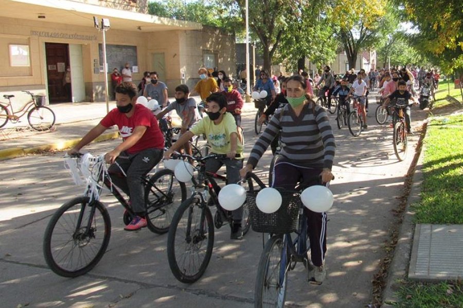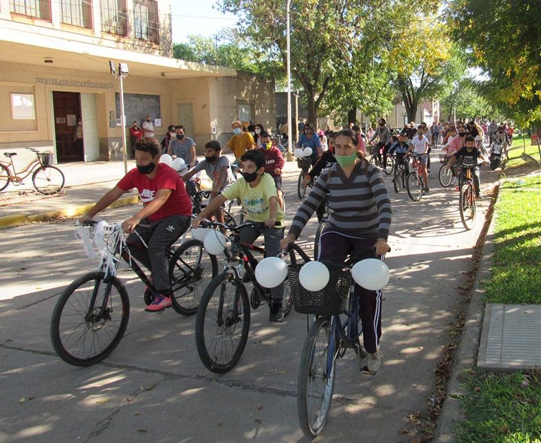 El tránsito en bicicletas por las calles del barrio sirvió además para llegar en familia hasta la "Cruz del Sur" un punto histórico de la ciudad de Esperanza que en tiempos de adversidades climáticas reunía a los colonos en su peregrinar para pedir lluvias para sus cultivos.