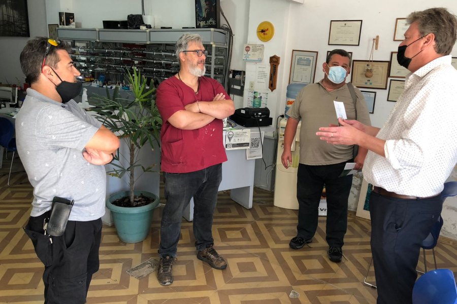 El titular de la Secretaría de la Producción, Martín Bircher, encabezó una recorrida por comercios de la zona del microcentro en compañía de representantes de CICAE y UCOEs con el objetivo de compartir con los comerciantes de la zona información detallada de los avances de la iniciativa que propone la concreción del primer Centro Comercial Abierto de la Ciudad.
