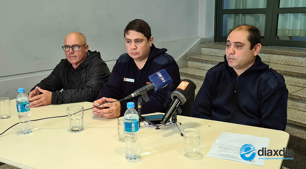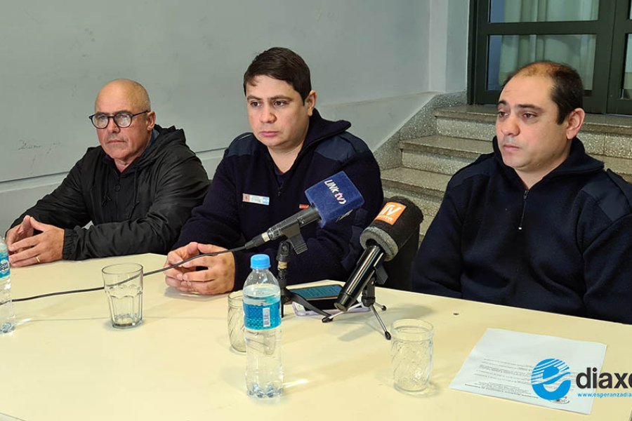Los bomberos Oscar Zurita y Hugo Castro junto al presidente de la Asociación Bomberos Voluntarios Alberto Nuñez, presentaron la nueva edición de la Campaña Solidaria del Juguete que año tras año impulsan desde la institución.