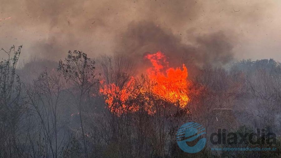 El viento y las condiciones de sequía ayudaron para la rápida propagación del fuego que comenzó a amenazar viviendas cercanas, en la zona de ruta 6, al Este de Esperanza.