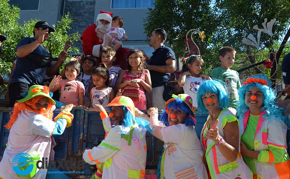 Todos dispuestos a alimentar las ilusiones de los niños, aquellos que esperaban su regalo en su escuela, en su comedor comunitario o en su Espacio de Primera Infancia o bien aquellos que sólo querían verlo pasar. Bomberos Voluntarios, colaboradores, trabajadores de prensa, inspectores municipales y payamédicos, todos en una caravana de esperanzas por un mundo mejor.