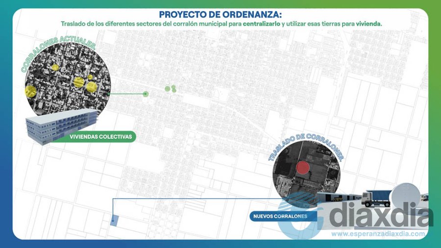 Su iniciativa parte de una mirada crítica y estratégica sobre el uso del suelo urbano: propone trasladar los actuales corralones municipales —ubicados en pleno centro de la ciudad— a un predio más adecuado en el sector sur, liberando así más de 8.500 m² para el desarrollo de un complejo urbano que contemple viviendas, comercios, oficinas y espacios públicos.