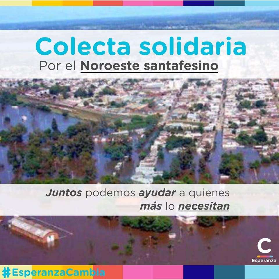 Bajo la consigna que "juntos somos más", desde Cambiemos Esperanza impulsan una colecta solidaria para ayudar a los santafesinos afectados por las intensas lluvias.