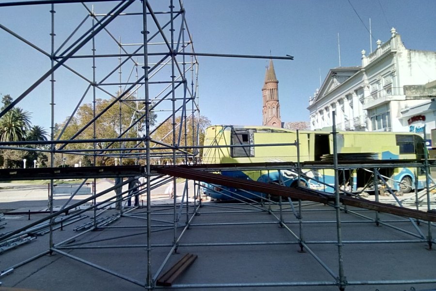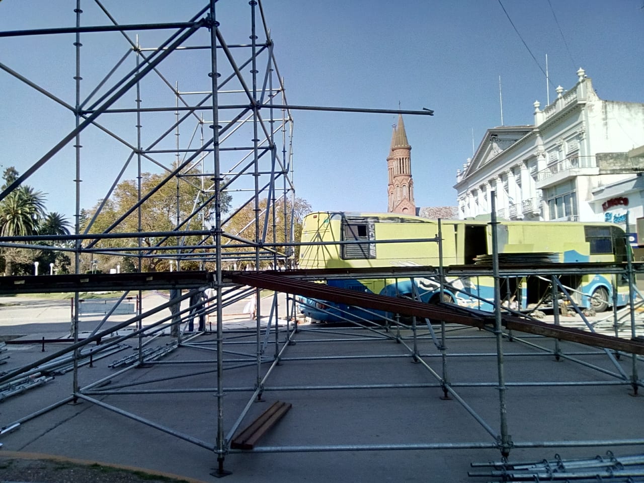 Este miércoles después del medio día se iniciaron las tareas de armado del escenario que será utilizado para la programación correspondiente a la Fiesta Nacional de la Agricultura y tendrá sobre las tablas entre otros números, la presencia de Alejandro Lerner.