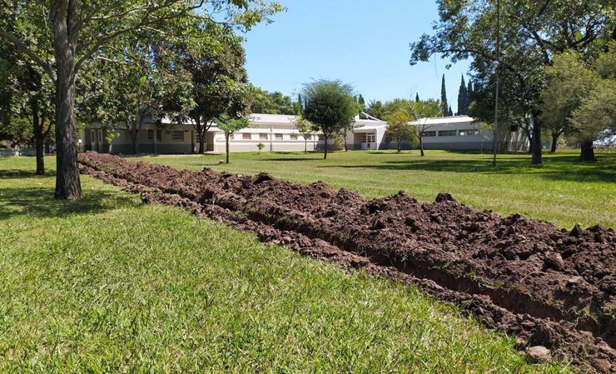 Una vez ingresado el tendido en el predio de la escuela el cable será soterrado -en procura del aspecto del paisaje circundante y de la seguridad del sistema de fibra óptica- en el predio de la EAGG.