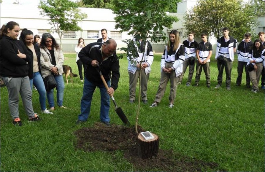 Tras finalizar el acto protocolar, se procedió a la plantación de árboles en conmemoración de dos integrantes de la comunidad educativa que la Escuela Granja perdiera físicamente en 2021.