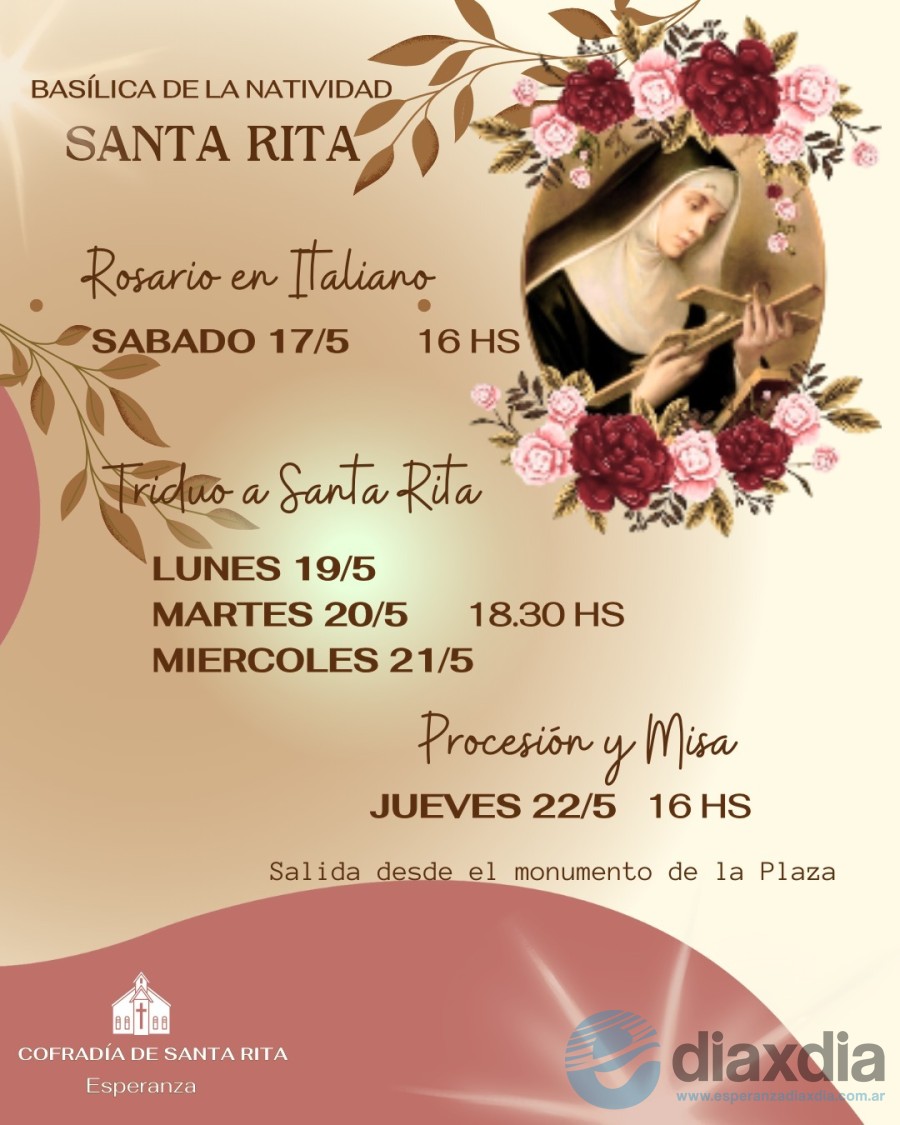 Desde la Basílica Natividad invitan a participar de las actividades de la Cofradía de Santa Rita, previas a su fiesta el próximo 22 de mayo.