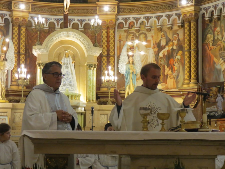 Fue la primera jornada de las preparatorias para la fiesta patronal. Cada jornada el Santo Rosario se reza a las 19:15 y la Santa Misa es a las 20. Este jueves orarán y bendecirán a las mujeres embarazadas y quienes quieran ser mamas.