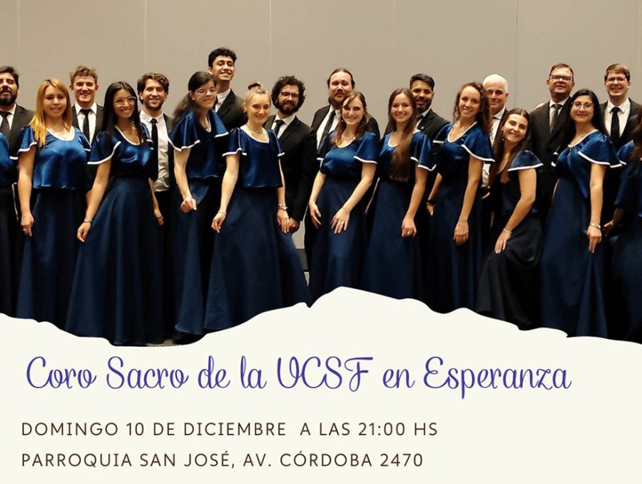 La agrupación coral de la Universidad Católica de Santa Fe tiene unos 30 coreutas que llegarán a nuestra ciudad este domingo para presentar un concierto sacro, obra que ya fuera presentada en otros templos de la capital provincial.