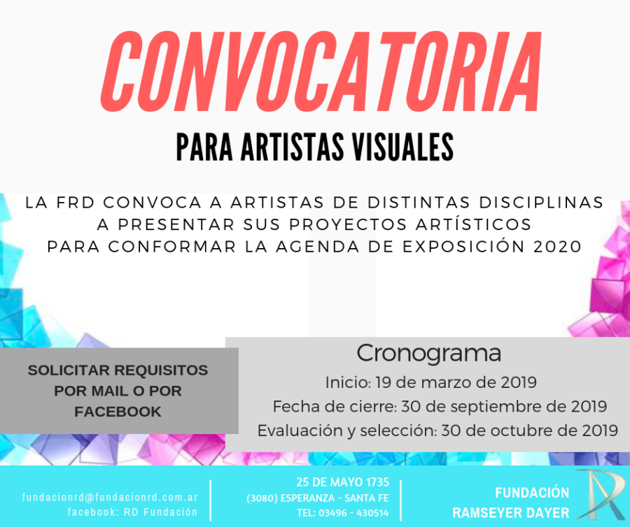 La Fundación Ramseyer Dayer informa que se encuentra abierta la convocatoria para presentar proyectos artísticos para formar parte de la agenda de muestras mensual de la FRD en el año 2020.