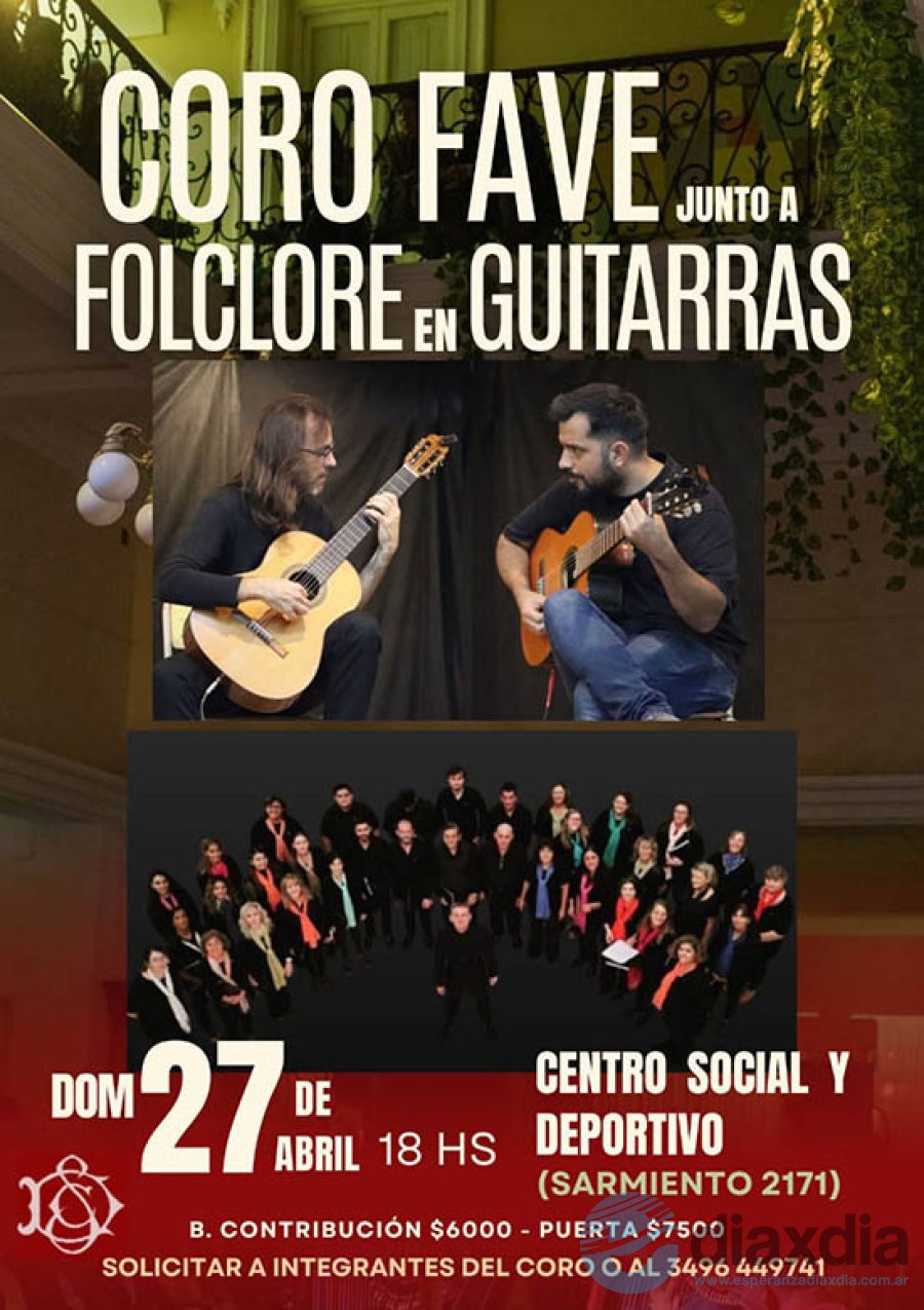 "Coro Fave" y "Folclore en Guitarras" este domingo en el Club Social