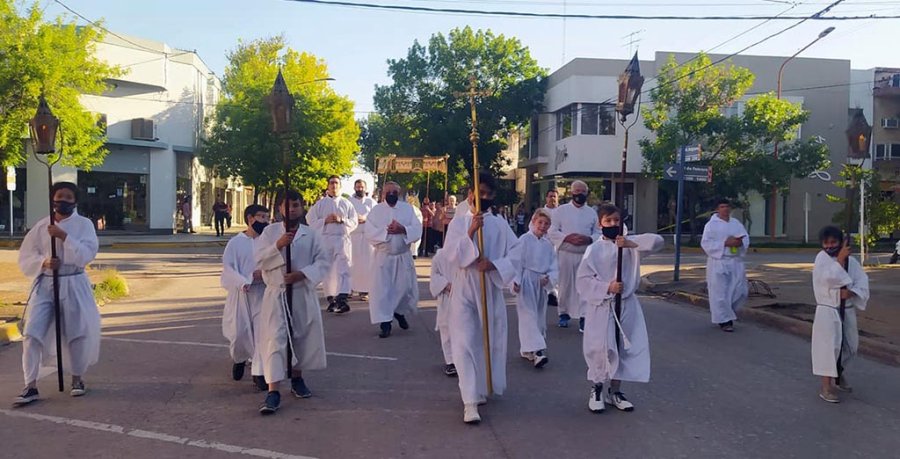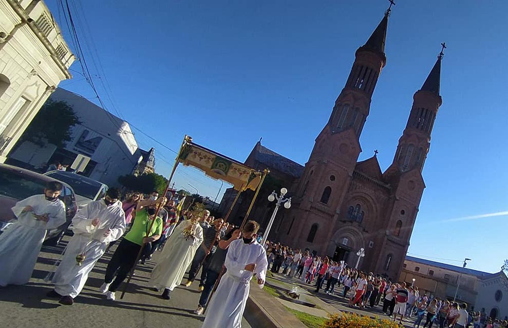 Luego una multitudinaria procesión con niños, jóvenes y adultos, familias enteras que desde Basílica Natividad peregrinaron por calle Belgrano, hasta la Iglesia del Sagrado Corazón de Jesús, en Barrio Norte.