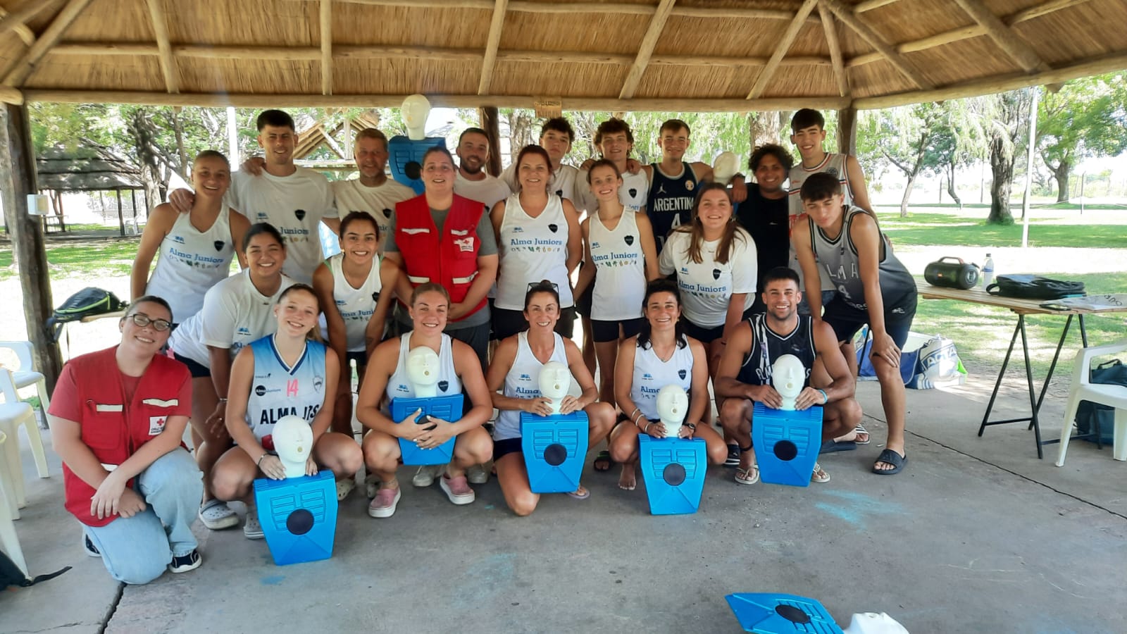 Este viernes por la tarde voluntarios de Cruz Roja Argentina Filial Esperanza brindaron una capacitación de RCP a los profesores del Club Atlético Alma Juniors, que recientemente comenzó sus colonias y actividades de verano.