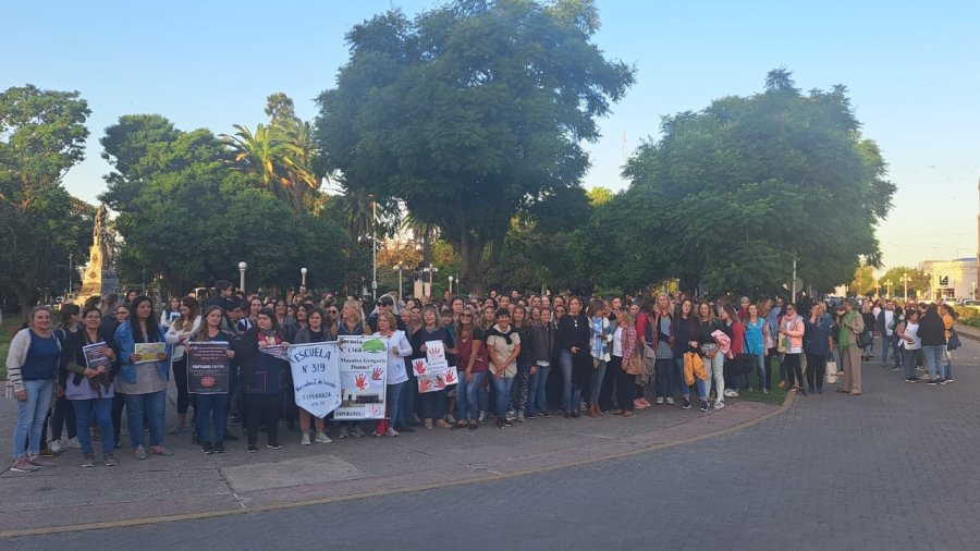 Tras la agresión que sufrió una docente por una madre y otra por parte de un alumno un grupo de maestras autoconvocadas se manifestaron ayer en Plaza San Martín.