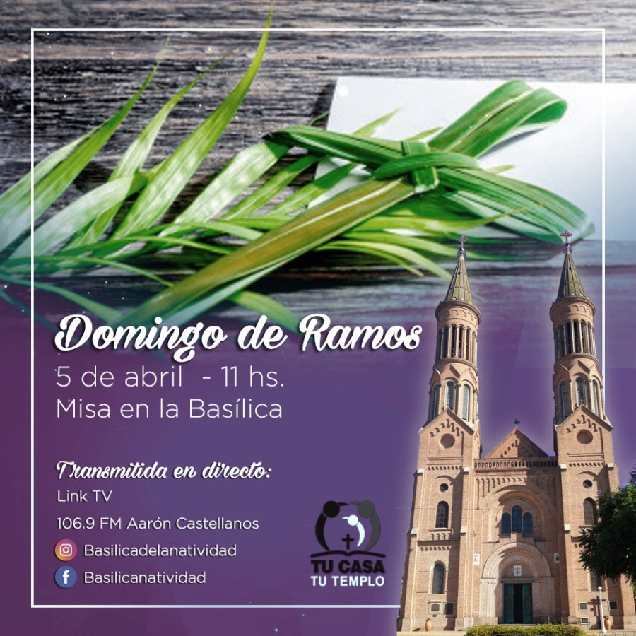 La celebración del Domingo de Ramos tendrá en esta jornada la posibilidad de ser seguida en directo por las redes sociales de la Basílica y también por medios de comunicación de la ciudad como Link TV y Radio Aaron Castellanos 106.9.-