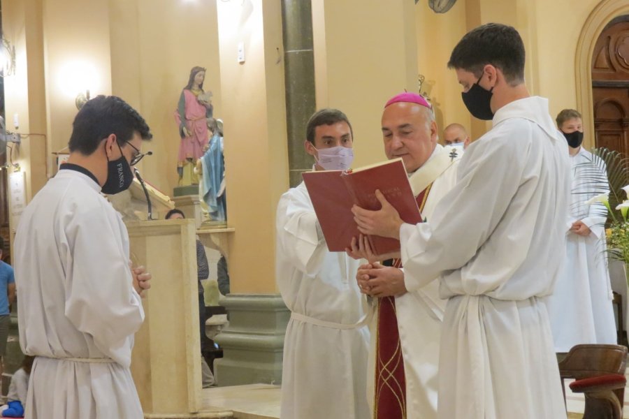 Sergio Fenoy encabezó este domingo la celebración religiosa donde el seminarista Franco Houriet fue instituido acólito.