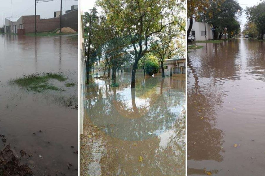 El municipio informó que se observaba un permanente ingreso de agua desde los campos del oeste, fundamentalmente en la zona de calle Soler, transformada en río, con agua corriendo hacia el Este.