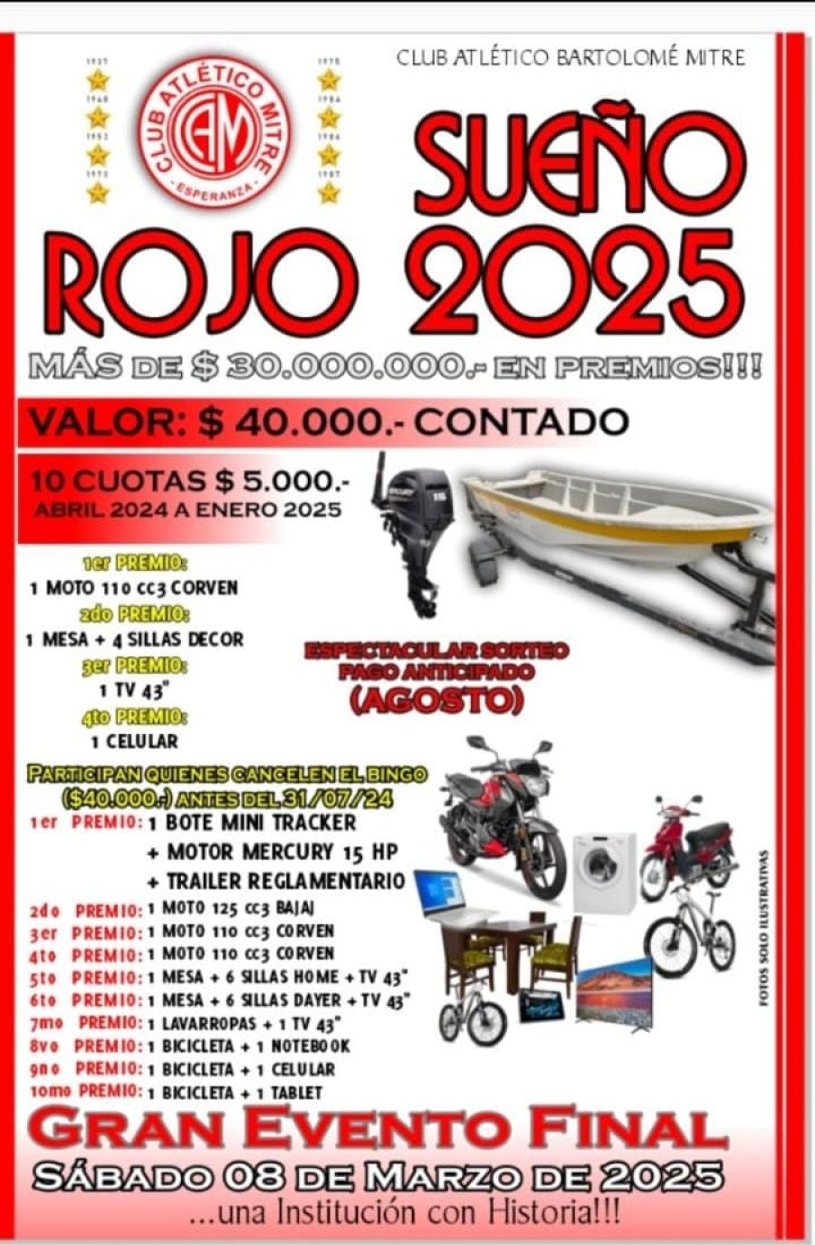 También se lanzó el "Sueño Rojo 2025", que tendrá como premios para el sorteo final del día 8 de marzo, Bote Mini Tracker con motor y trailer, motos, mesas y varios premios más. Además si el pago es de contado tendrá otros espectaculares premios.