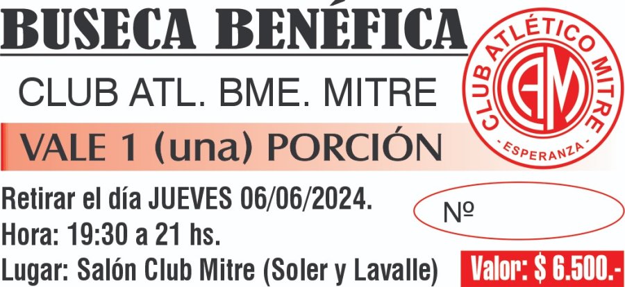 Y por si fuera poco el jueves 6 de junio se viene la Buseca benéfica y ya se encuentran a la venta los tickets, para reservas comunicarse con la secretaría del Club de 18 a 20 horas.