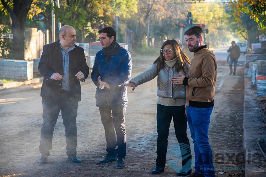 El intendente de Esperanza, Rodrigo Mülller, acompañado por la secretaria de Obras e Infraestructura Pública, Gabriela Roldán, recorrieron la obra de articulado en calle Belgrano, entre Pittier y Bosch.