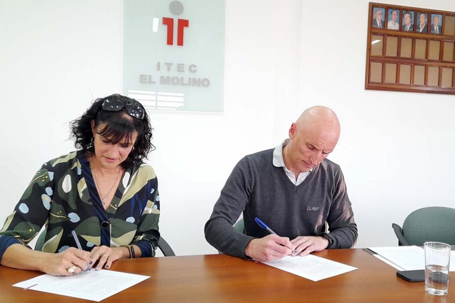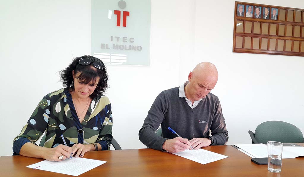 En un sencillo acto en la sede del ITEC, se llevó a cabo la firma de un convenio entre la Fundación Instituto Tecnológico El Molino y la Asociación Ayuda Niños Especiales -AANE- de la ciudad de Esperanza. Ambas instituciones, estuvieron representadas por el Lic. Gustavo Zenclussen y Graciela María Breques, respectivamente.