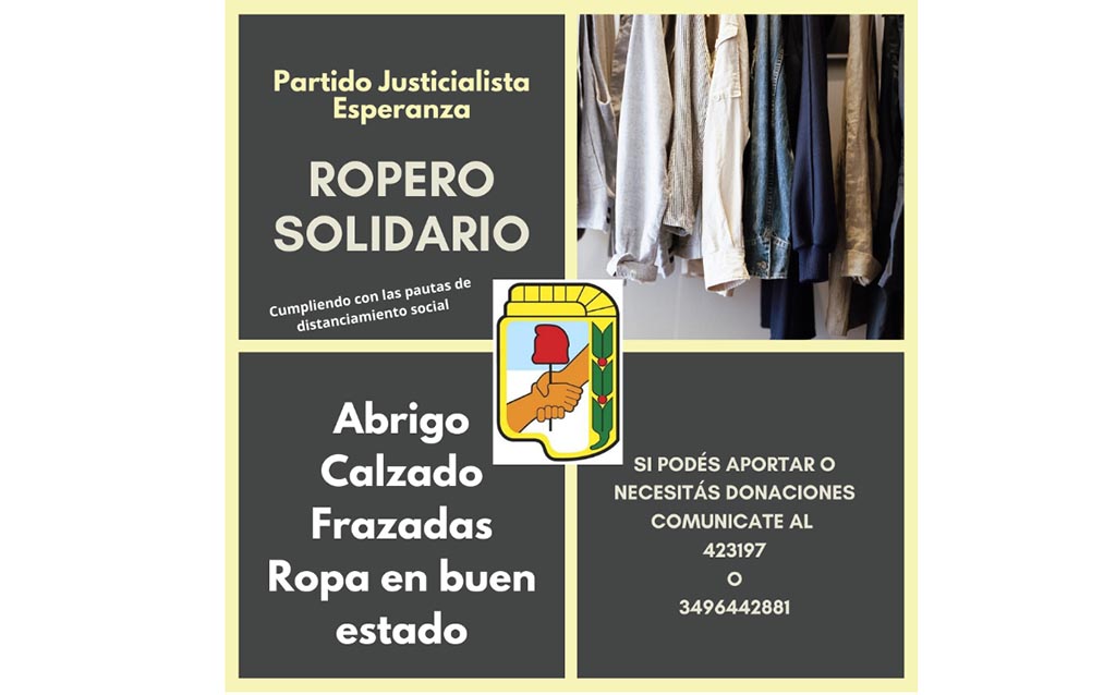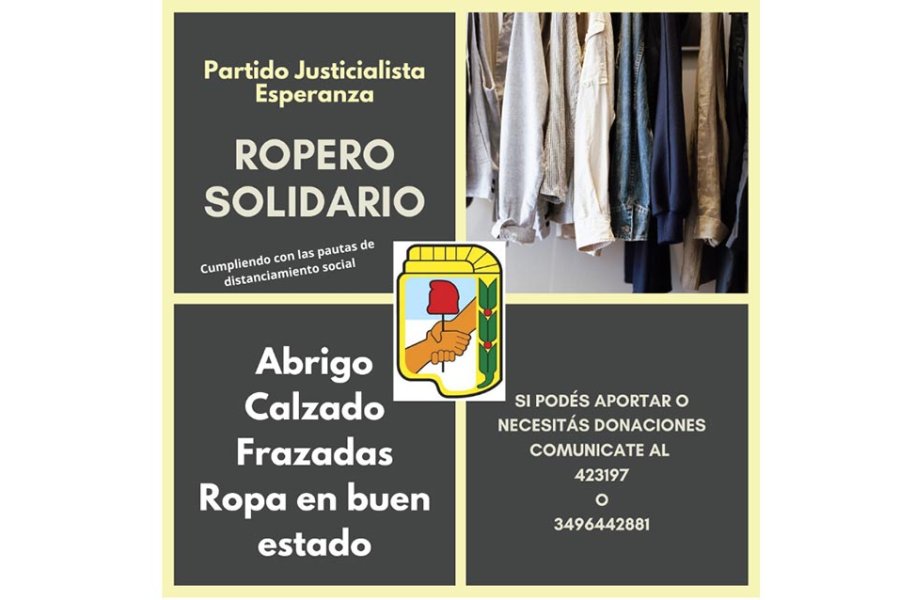 Teniendo en cuenta la difícil situación que están pasando muchos hogares esperancinos, y en particular los más necesitados, el PJ local propone un ropero solidario, cumpliendo con las pautas de distanciamiento social.
