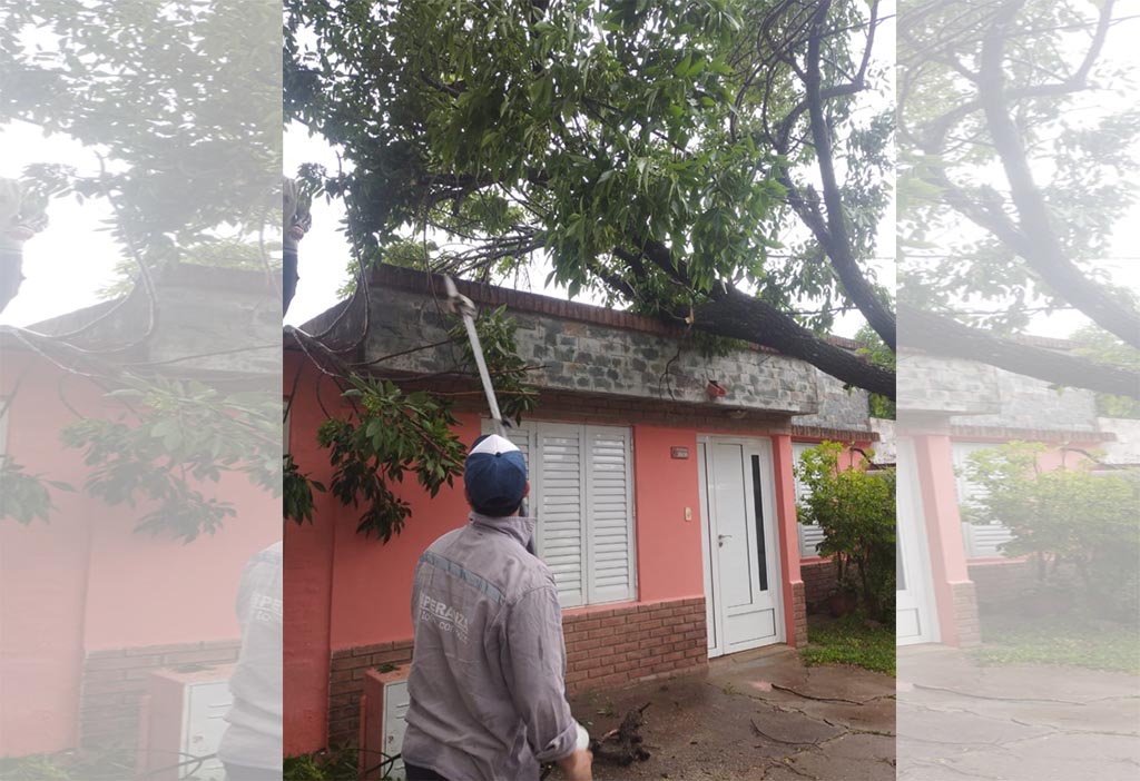 Según informaron desde el área de Servicios Públicos de la Municipalidad de Esperanza, hasta el momento se registra la caída de cuatro árboles, una luminaria, ramas y cables cortados.