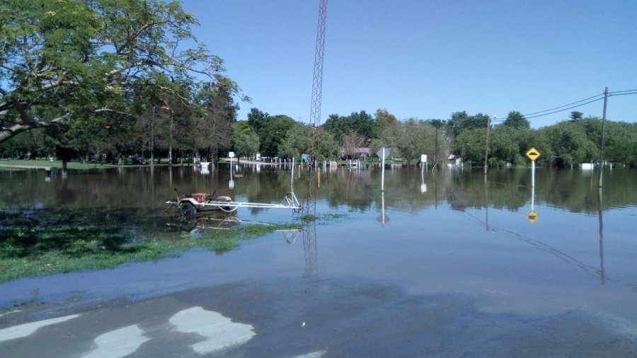 En el Balneario Municipal mientras empleados comienzan a preparar el sector para la temporada de verano, por la crecida el agua cortó caminos y accesos internos como así también zonas de parrilleros.