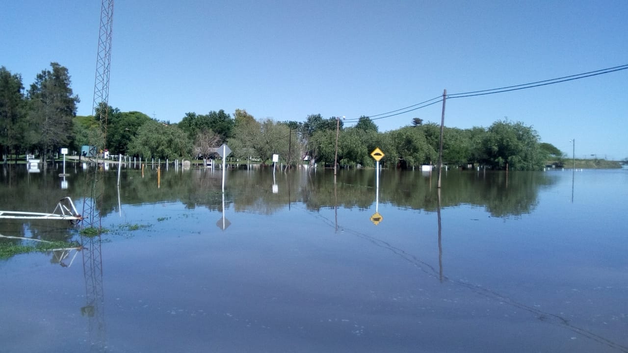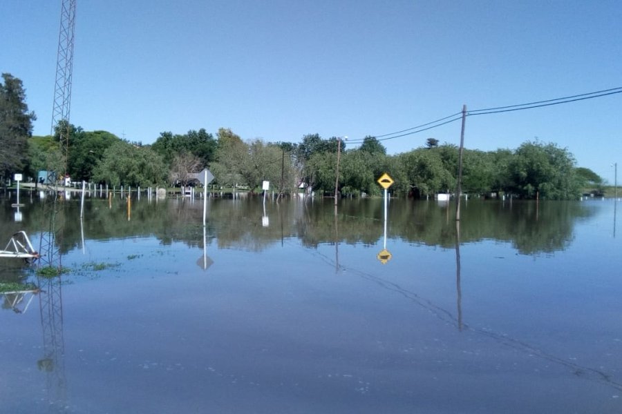 Está cortado el camino de acceso al "puente de hierro" la estructura que une Esperanza con Cululú sobre el arroyo que lleva ese nombre. Para la nomenclatura de rutas provinciales se trata de la ruta 50S que está interrumpida por el avance del agua.