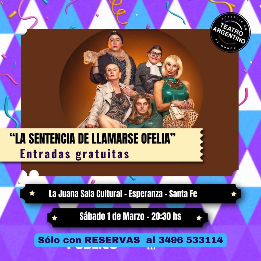El sábado 1 de marzo se presentará "La sentencia de llamarse Ofelia", mientras que el domingo se la obra "Gira trunca".
