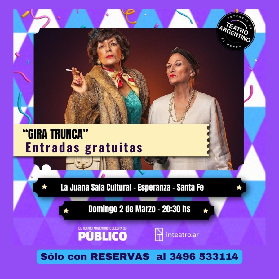 Dos propuestas teatrales con entrada gratis se brindarán el próximo fin de semana en la ciudad. La propuesta del Instituto Nacional del Teatro incorporó a La Juana entre unas 300 salas de todo el país. Las entradas deben reservarse antes.